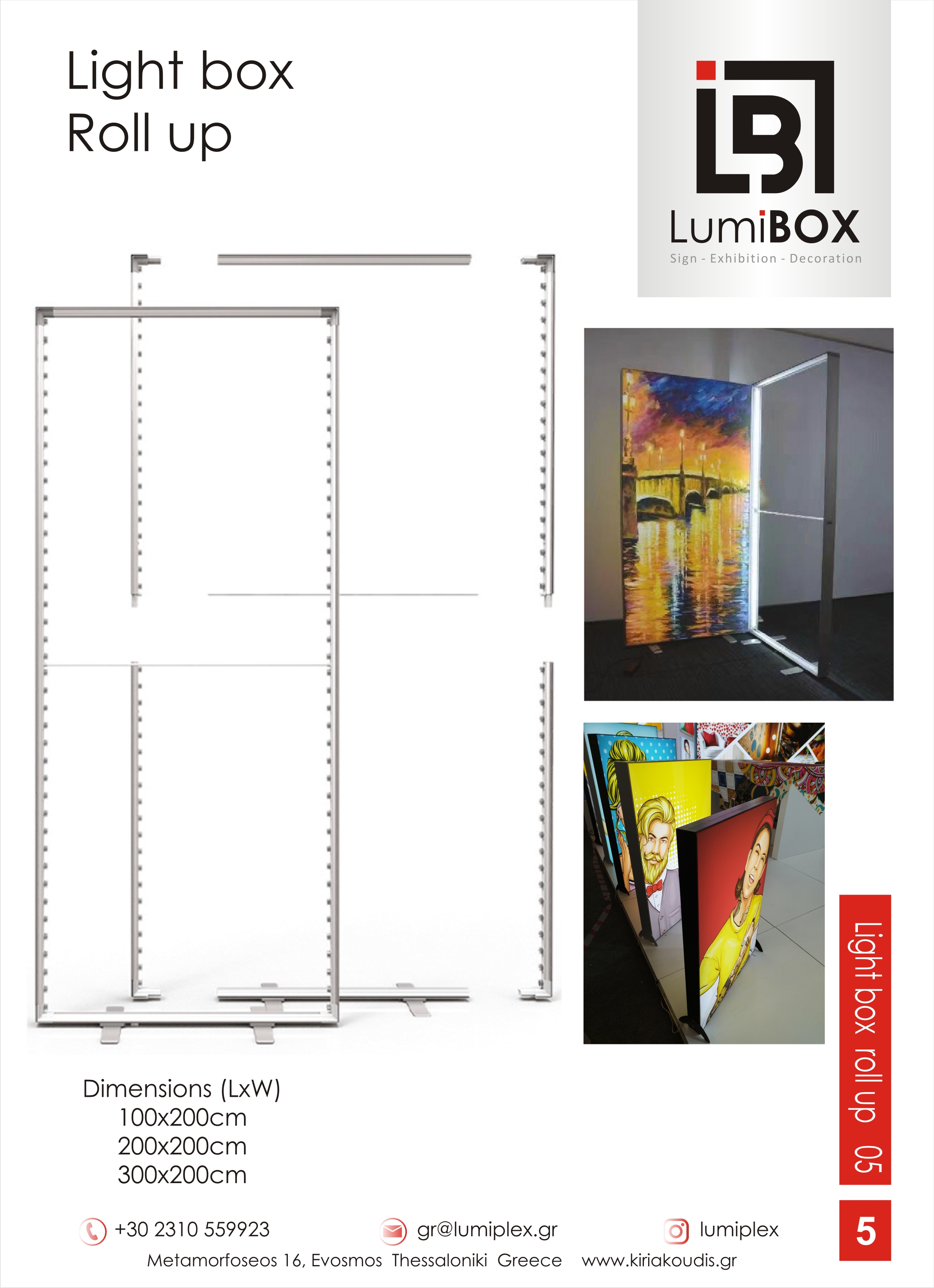 Τα γράμματα Lumibox αποτελούν καινοτομία και αποκλειστικότητα της Kiriakoudis Design και έχουν καταστεί ένα από τα πιο πετυχημένα brand της εταιρίας. Συνδυάζουν στυλ, φωτεινότητα και αντοχή, προσφέροντας εντυπωσιακή οπτική παρουσία σε εσωτερικούς και εξωτερικούς χώρους. Η μοναδική τους κατασκευή επιτρέπει τη δημιουργία τρισδιάστατων γραμμάτων και σχημάτων, φωτισμένων με ομοιόμορφο τρόπο, που τραβούν την προσοχή σε κάθε περιβάλλον.